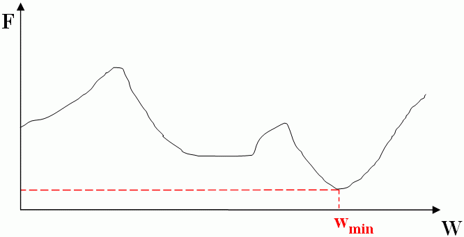 wäre die optimale Lösung (wmin), ein absolutes Minimum hinsichtlich des Fehlers.